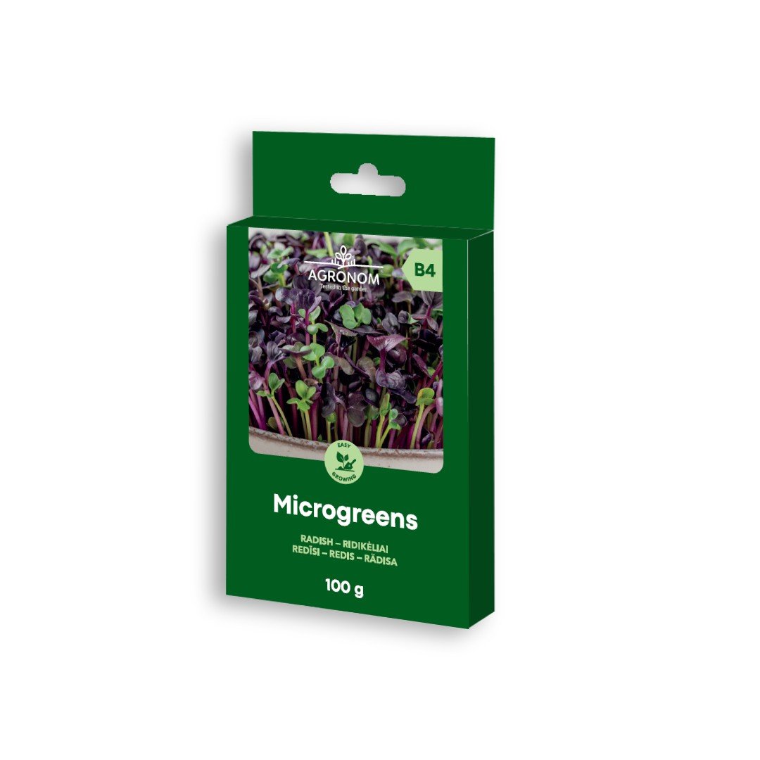 Sėklos, skirtos jauniems lapeliams – mikrožalumynams – auginti. Mikrožalumynai yra naudojami maisto patiekalų pagardinimui arba papuošimui. Sėklos sėjamos visus metus į daigyklas arba negilias dėžutes – daiginami durpinėje tabletėje ar ant sterilaus pluošto, valgomi be šaknų. Ridikėlių mikrožalumynai yra sveikas ir skanus ingredientas, kurį galite įtraukti į savo mitybą ir mėgautis jų unikaliu skoniu bei maistinėmis savybėmis. Be to, jie gali praturtinti jūsų patiekalus ir suteikti jiems žavesį ir estetinį grožį.